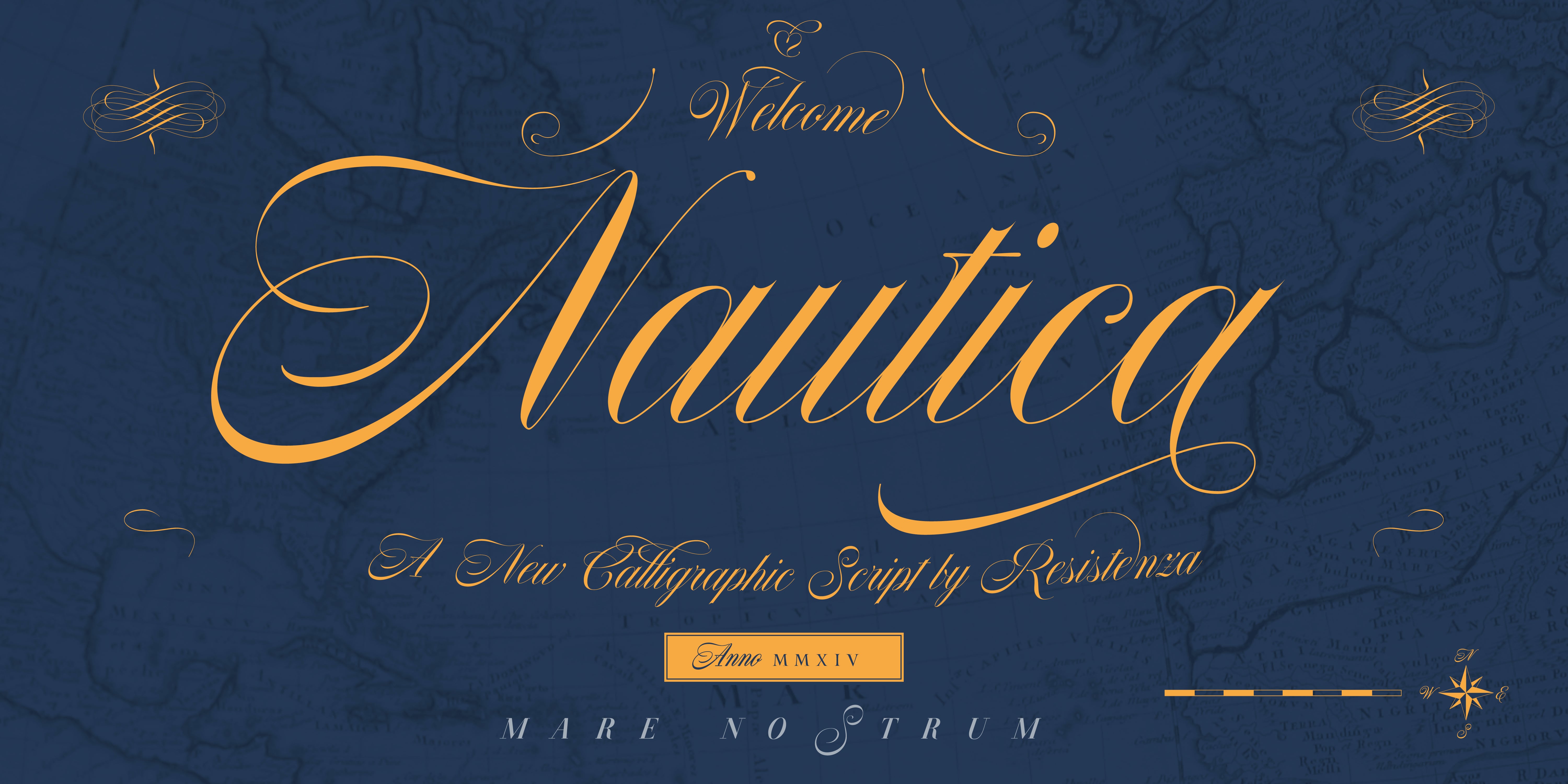 Designed by Resistenza Type FoundryNautica is a new script typeface based on Copperplate’s ductus. High in contrast, it is a very original type with a strong character. With over 1000 glyphs and extensive language support, Nautica offers full professional typographic features. Ligatures and swashes are more inspired by brush pen strokes. Nautica provides three weights and one set of useful icons and knots to improve your graphics. Nautica works very well with Turquoise check it out.